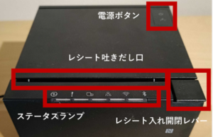 ステータスの確認方法については後述します。 - レシート入れ開閉レバー